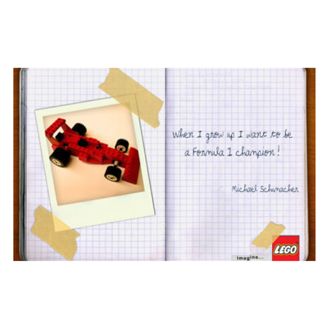 This ad isn’t celebrating success, it’s celebrating the beginning of it. A simple LEGO car taped into a notebook sits beside a handwritten dream: “When I grow up I want to be a Formula 1 champion.” Signed, Michael Schumacher. The message lands softly but powerfully. Big futures don’t start big. They start with play, imagination, and a child daring to picture themselves somewhere greater.