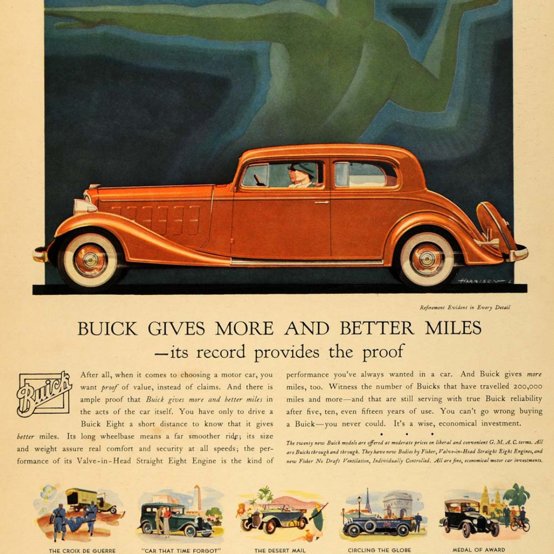 This vintage Buick ad brags that the car doesn’t just claim durability, it proves it. The whole page is basically Buick saying, “Don’t trust what we say. Trust the odometer.”