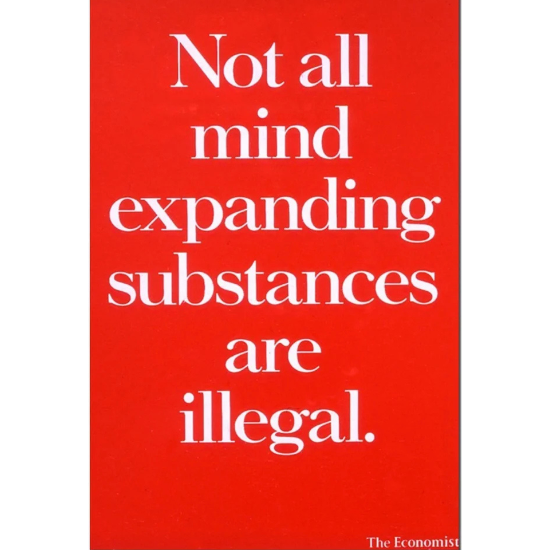 At first glance, it feels blunt, almost confrontational. One sentence. Red background. No images to soften the message. Just a statement that forces you to pause and reread. “Not all mind expanding substances are illegal.” It’s provocative without being reckless. Thought-provoking without being loud. The Economist isn’t telling you what to think, it’s inviting you to question what you already believe. And that invitation feels intelligent, not rebellious.