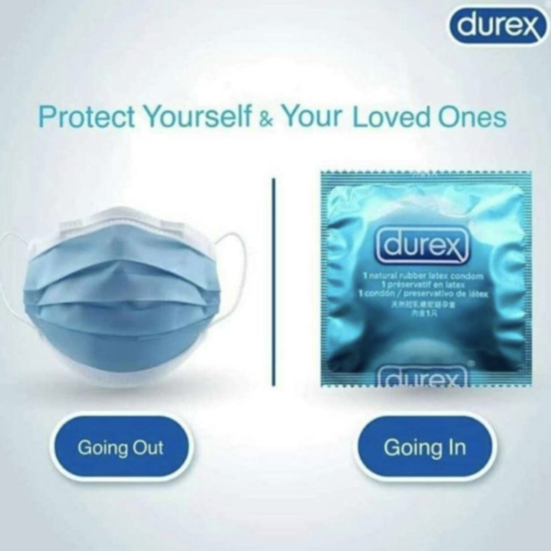 This Durex ad cleverly pairs a face mask with a condom under the headline “Protect Yourself & Your Loved Ones.” One is labeled “Going Out,” the other “Going In,” making a clean but cheeky comparison between two very different forms of protection.