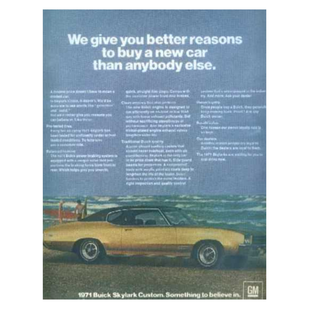 Do what Buick did, ditch the theatrics and lean into real value. Give people reasons they can feel in their everyday lives. Present your product like someone who respects their audience’s common sense. Keep it simple, relatable, and grounded. When you frame your product as the obvious choice, not because of hype, but because it genuinely earns it, you don’t just advertise. You convince.