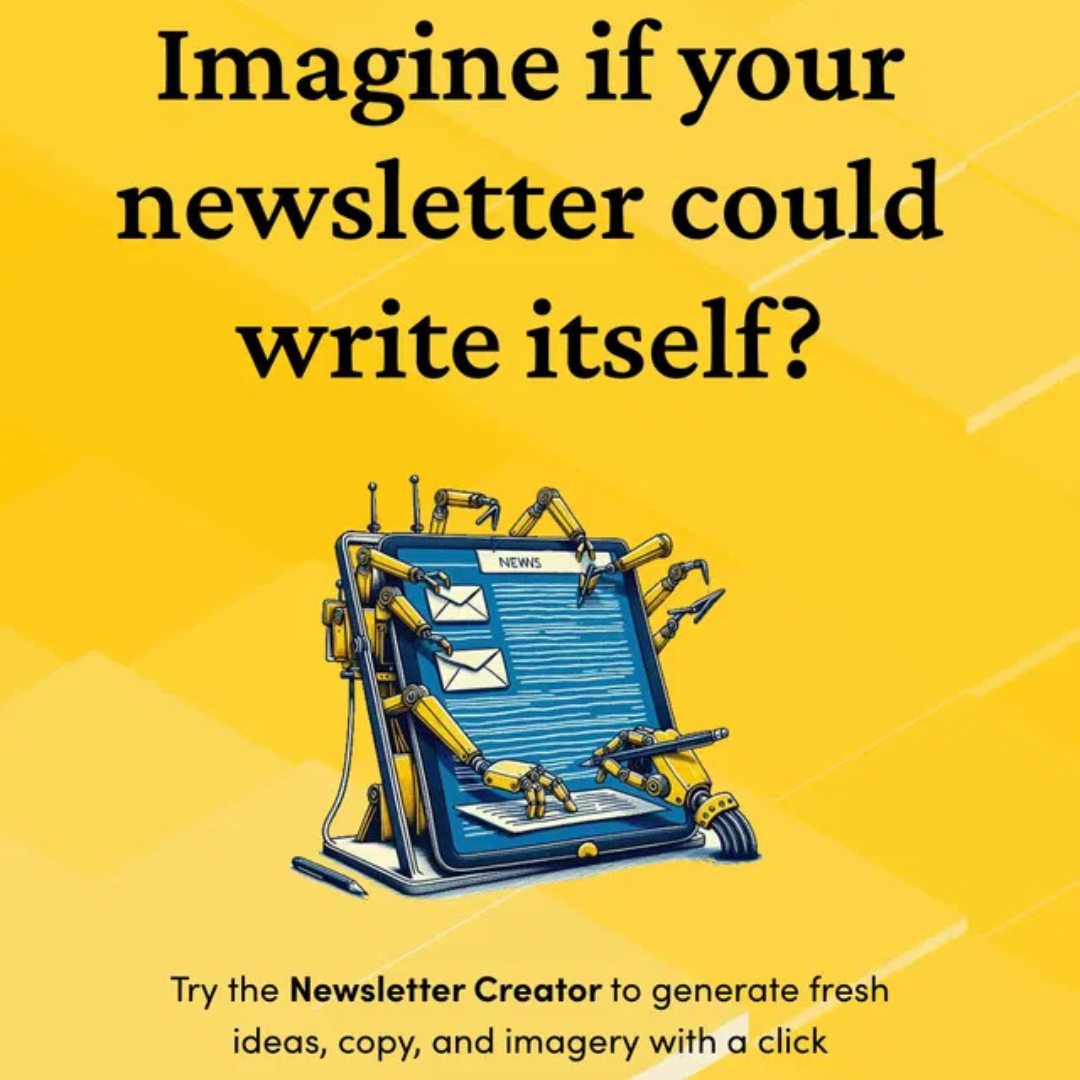 The ad uses a wish-fulfillment hook: “Imagine if your newsletter could write itself?” It taps into a universal pain point, creating content is hard and time-consuming. Then it instantly resolves that pain with a magical-sounding solution. The bright yellow background is attention-grabbing, and the robot arms image visually dramatizes automation without needing extra explanation.