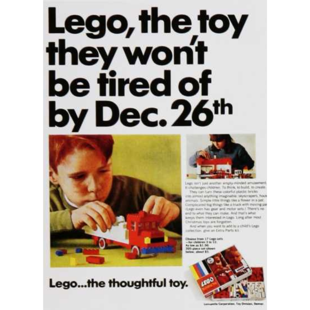 This ad speaks directly to every parent who’s seen the excitement fade by December 26th. Instead of promising louder, bigger, or flashier fun, LEGO makes a quieter claim: this is the toy that keeps earning its place. The headline is honest, almost cheeky, and instantly relatable. It acknowledges a universal truth and offers a simple, thoughtful solution.