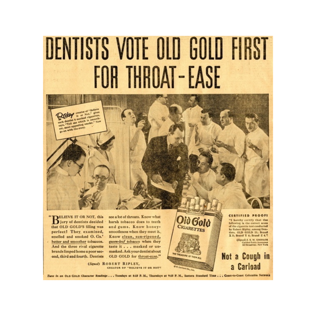 Instead of appealing to taste or lifestyle, it borrows credibility, dentists in white coats, formal language, stamped “proof.” The message is blunt and confident: if the experts agree, you don’t need to question it. At the time, trust in institutions was high, skepticism was low, and medical authority carried enormous weight. This ad leans fully into that reality.