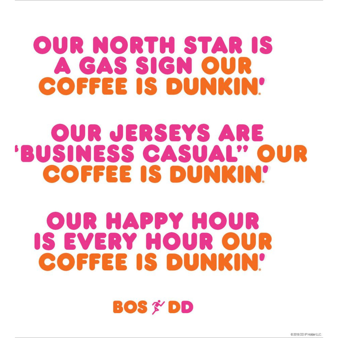 Dunkin’ leans all the way into identity here. Instead of talking beans, brews, or blends, it talks culture. Gas station signs become guiding stars, casual jerseys pass for “business attire,” and happy hour is… literally any hour. It’s playful, loud, and proudly blue-collar in the most Boston way possible. The message is simple: Dunkin’ isn’t a drink, it’s who you are before you even take a sip.