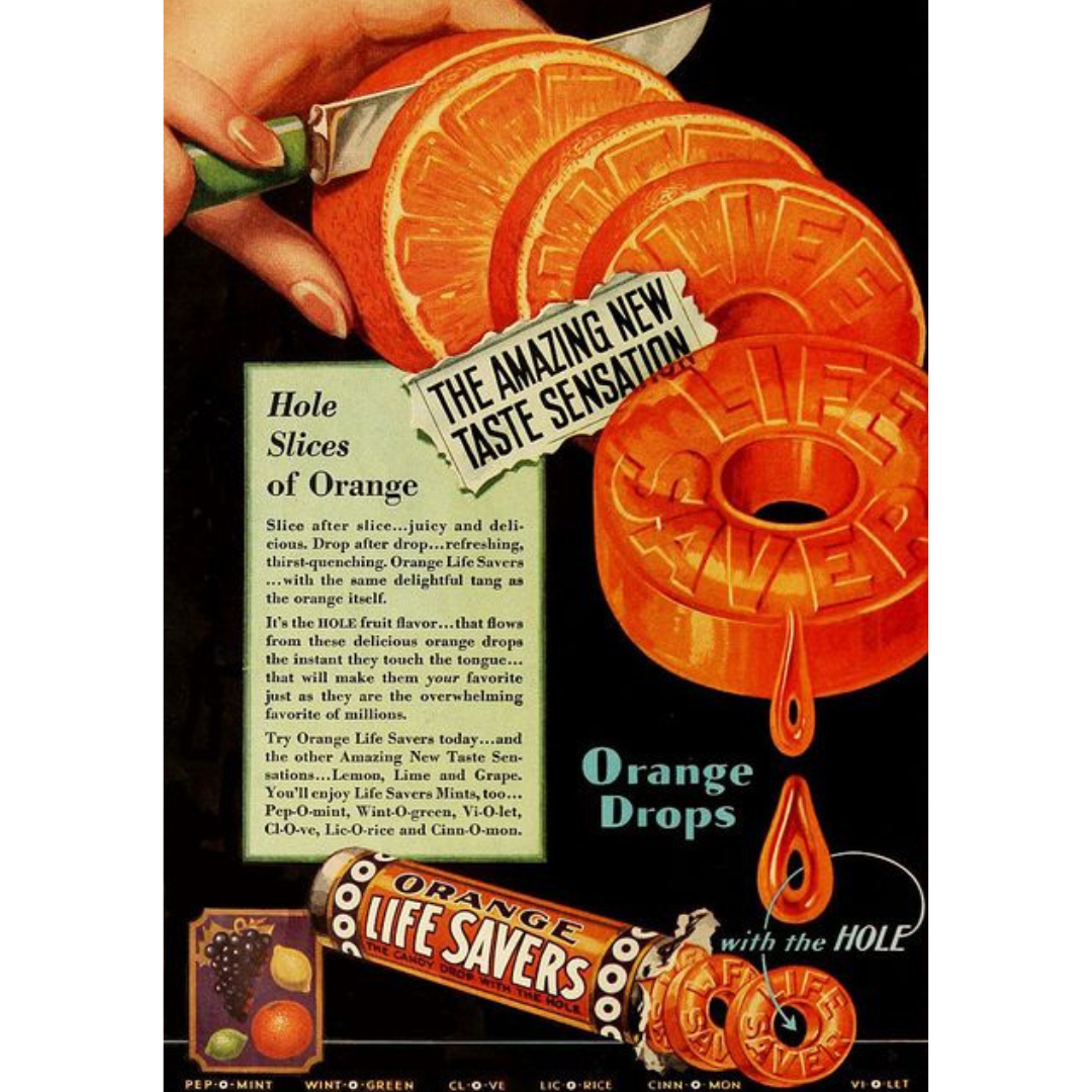 Real fruit equals real flavor. No debate. No explanation. By physically turning orange slices into candy rings, the ad collapses the distance between “natural” and “manufactured.” Your brain fills in the gap automatically: if it looks this close to the real thing, it must taste like it too. The dripping juice, the clean cuts, the bold color, every detail is there to trigger your senses before you ever unwrap the product.