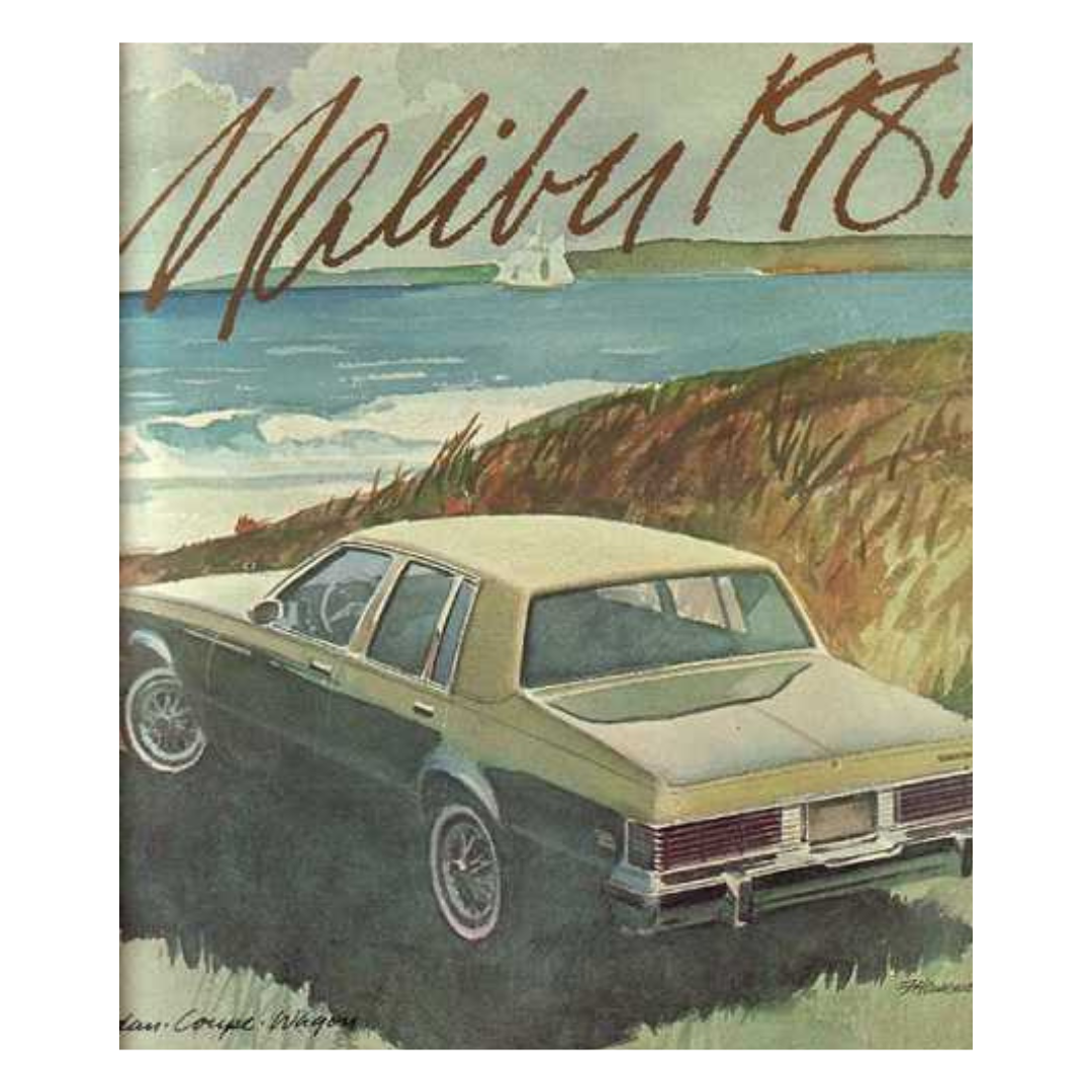 This vintage Malibu ad feels like a memory captured in watercolor, soft edges, warm tones, and that classic American car overlooking an endless shoreline. It’s not shouting features or stats. It’s whispering freedom. The car isn’t just parked near the coast… it belongs there, like it’s waiting for someone to climb in and chase something that can’t be found on a map. It’s an ad that sells a feeling more than a vehicle, escape, possibility, and the quiet thrill of going wherever the horizon calls.