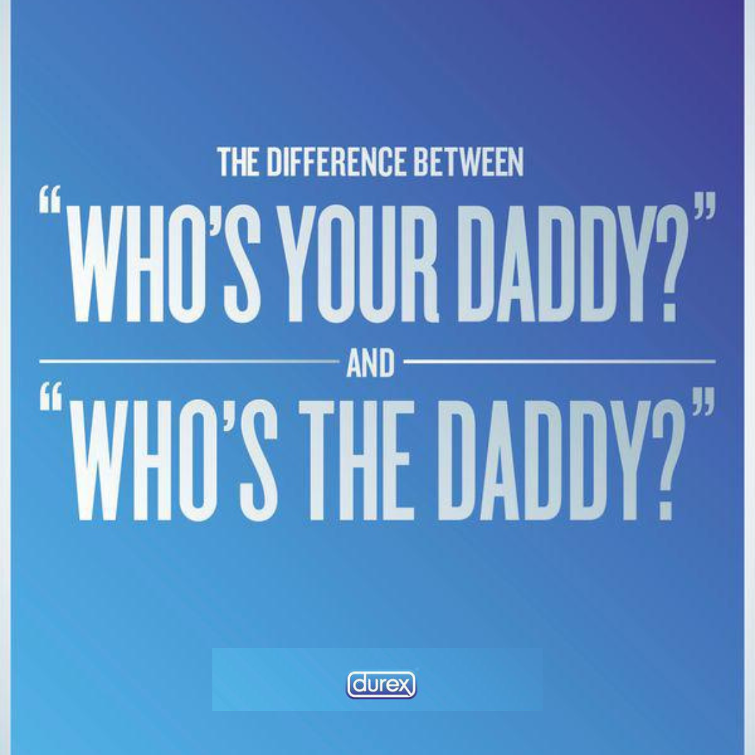 This Durex ad cleverly uses humor and wordplay to communicate a serious message about safe sex and contraception. The line, “The difference between ‘Who’s your daddy?’ and ‘Who’s the daddy?’” plays on two familiar phrases, one typically used flirtatiously or playfully in intimate settings, and the other usually asked in situations of uncertainty around paternity.